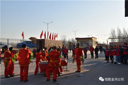 2月18日(農(nóng)歷正月初七)上午8:18分,金河公司舉行開業(yè)儀式,采用既喜慶熱鬧又綠色環(huán)保的敲大鼓形式。