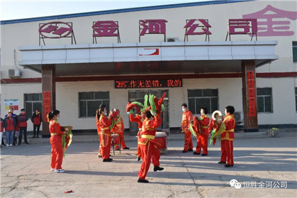 2月18日(農(nóng)歷正月初七)上午8:18分,金河公司舉行開業(yè)儀式,采用既喜慶熱鬧又綠色環(huán)保的敲大鼓形式。