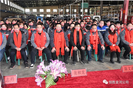 最后全體起立朗誦公司口號“金河發(fā)展,我的責(zé)任”——