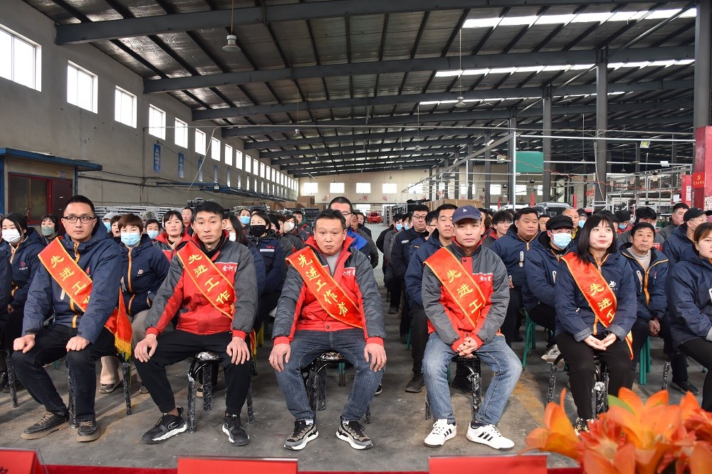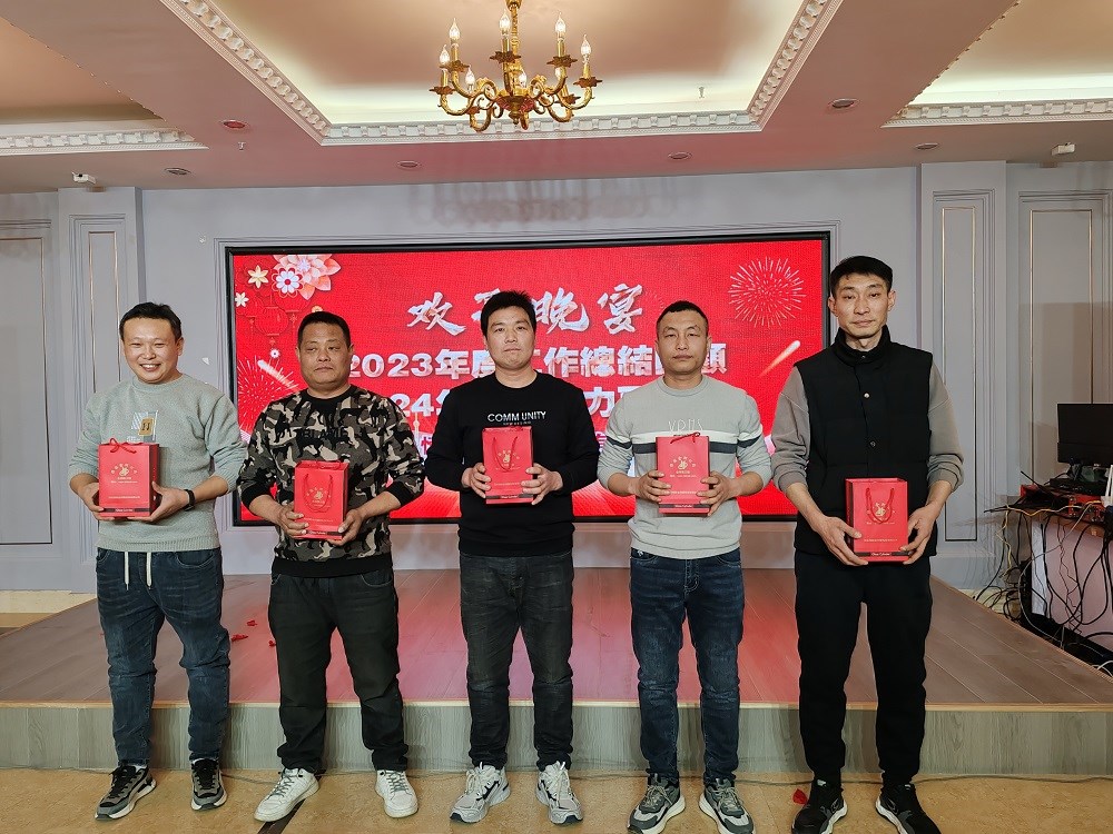 首先由行政辦宣讀會場紀律,然后回顧2023年公司發(fā)展歷程,總結過去一年我們?nèi)〉玫某煽兣c不足之處,展望美好2024。接下來是激動人心的頒獎表彰時刻,五位年度優(yōu)秀員工脫穎而出,由生產(chǎn)副總劉海峰與銷售副總郭文斌為他們頒獎,公司總經(jīng)理、黨支部書記陳文通上臺與其合影留念。