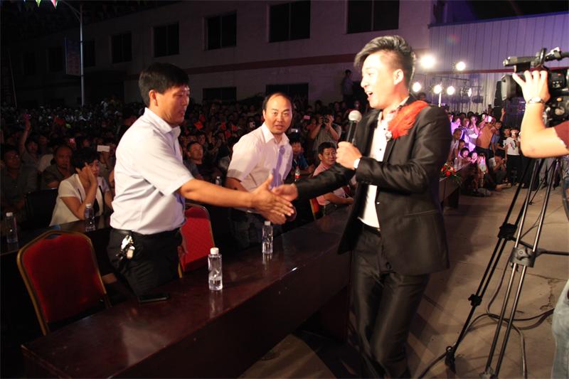9月9日晚7:30分,公司舉辦“助力十月突破,金河在行動大型文藝晚會”,董事長張和龍、總經(jīng)理陳文通、市領(lǐng)導王占強、葉全樂和市電視臺臺長李福順、工信局長杜文華、工商聯(lián)主席董衛(wèi)兵及鎮(zhèn)黨委書記、鎮(zhèn)長在主席臺就位,來自全市近萬名觀眾一起觀看了演出。市場部員工演唱《咱金河的人》鏗鏘有力,氣勢宏大,彰顯出金河人團結(jié)一致,共創(chuàng)佳績的決心;后勤員工一曲《小蘋果》廣場舞,再次點燃現(xiàn)場,吶喊聲不斷。演出隊的節(jié)目更是精彩紛呈,星光大道明星“楊帆”的一首《呼倫貝爾大草原》將現(xiàn)場氣氛推向高潮,帶動了所有觀眾,金河全體員工全體起立朗誦企業(yè)理念,整齊有序,聲音宏亮。臺上演員的激情演出,臺下觀眾不時報以熱烈掌聲;場內(nèi)外由公安干警和公安交警在現(xiàn)場維持秩序、指揮交通,演出取得圓滿成功。