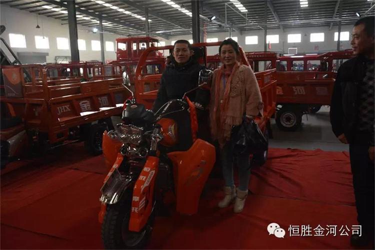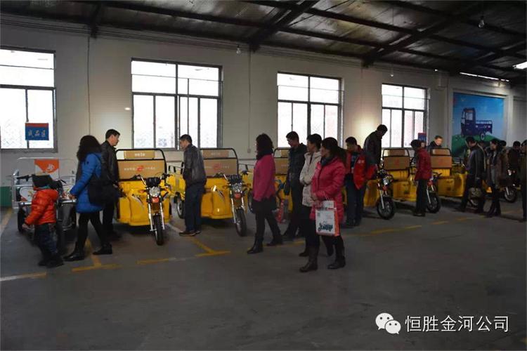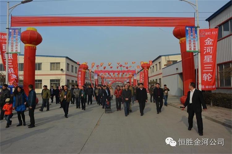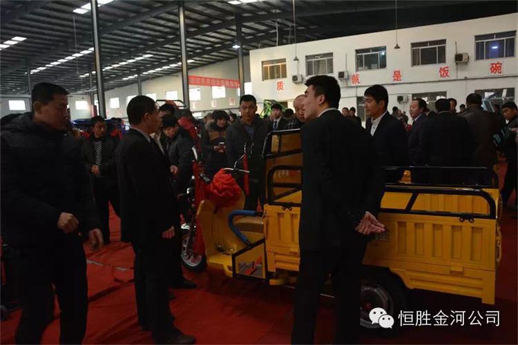 1月7日下午1點,恒勝金河工作人員陪同與會經(jīng)銷商乘坐48座八輛通宇大巴,進入公司參觀,一路上公安交警維持道路秩序,公司門口鑼鼓升天,樂隊齊奏歡迎曲,紅燈籠,彩旗高高掛起,金河公司滑翔機在上空猶如春晚小彩蝶自由旋轉(zhuǎn),美麗如畫,公司高管與政府領(lǐng)導(dǎo)陪同經(jīng)銷商先后參觀了車廂、車架、涂裝、污水處理站、電動、后橋、組裝、棚車、展廳等,每個展點都給經(jīng)銷商帶來非常震撼的感觀與驚喜!